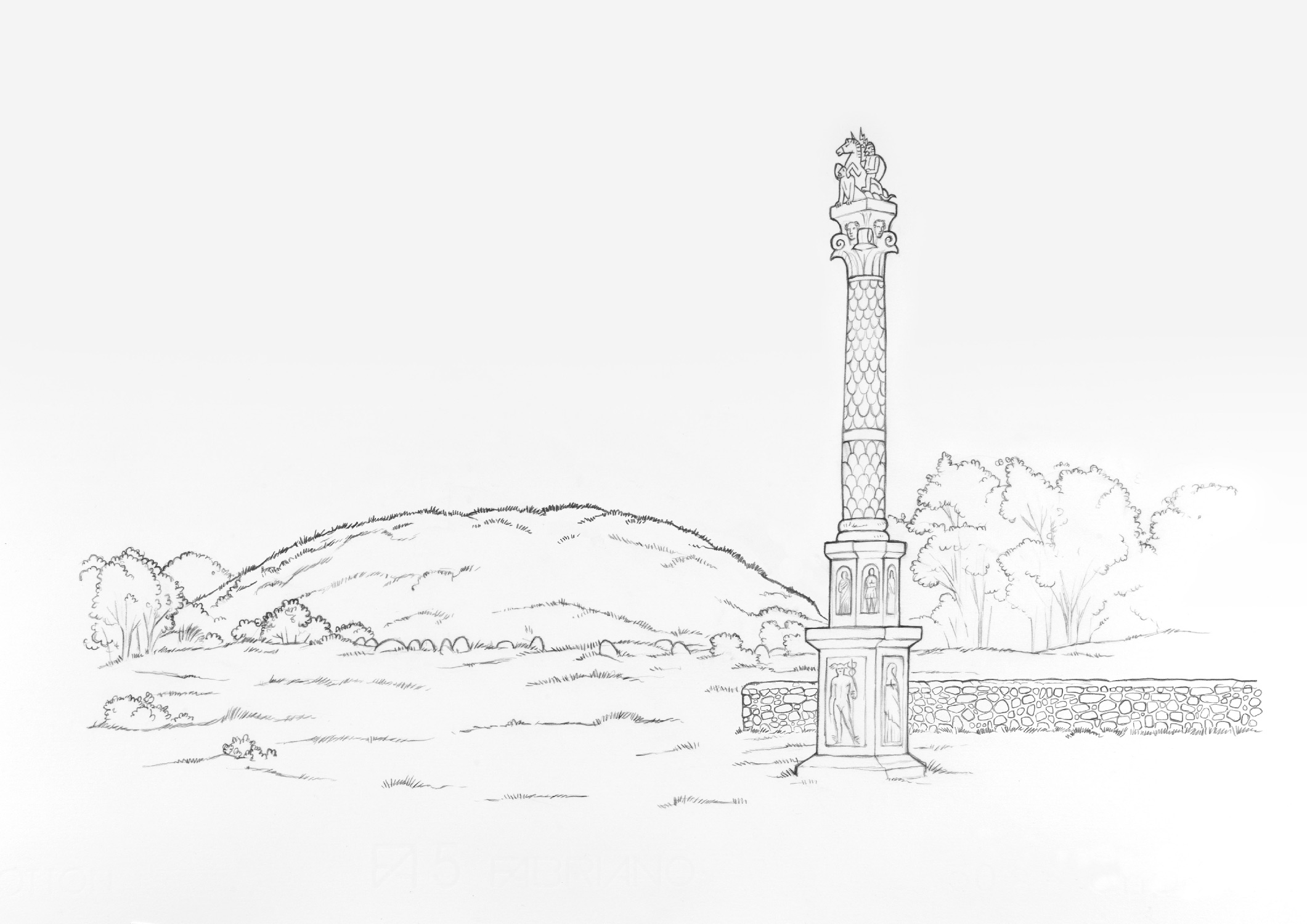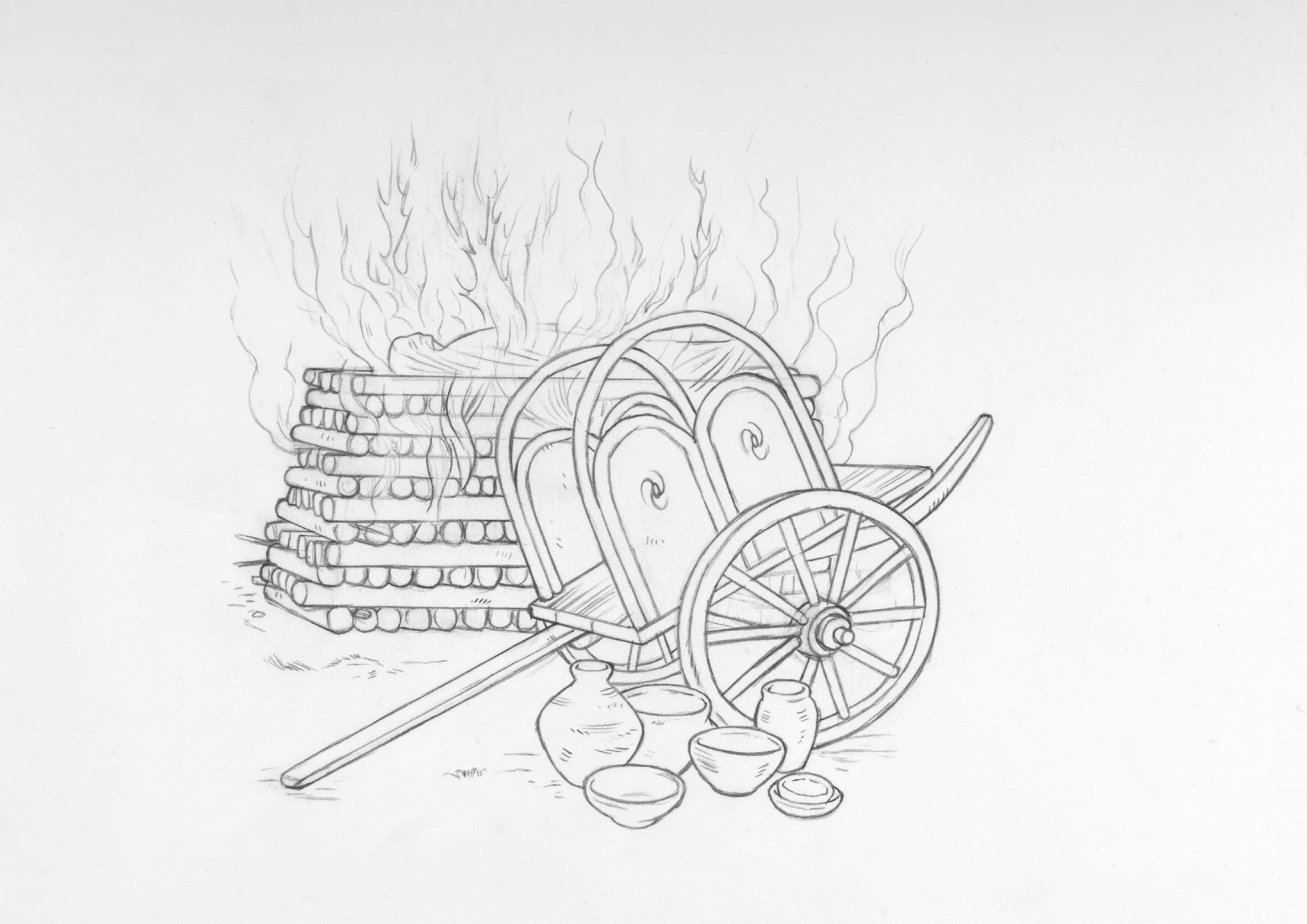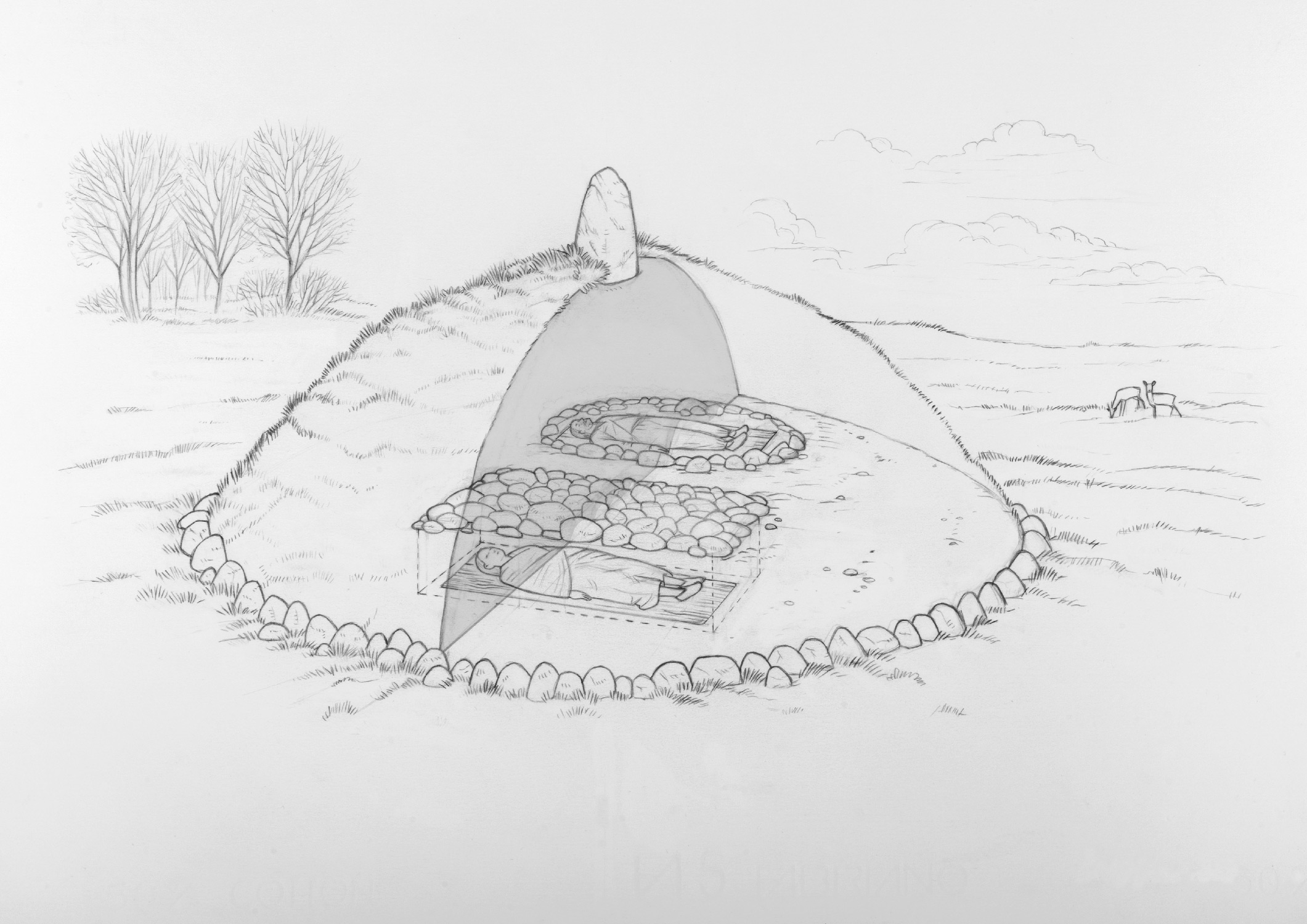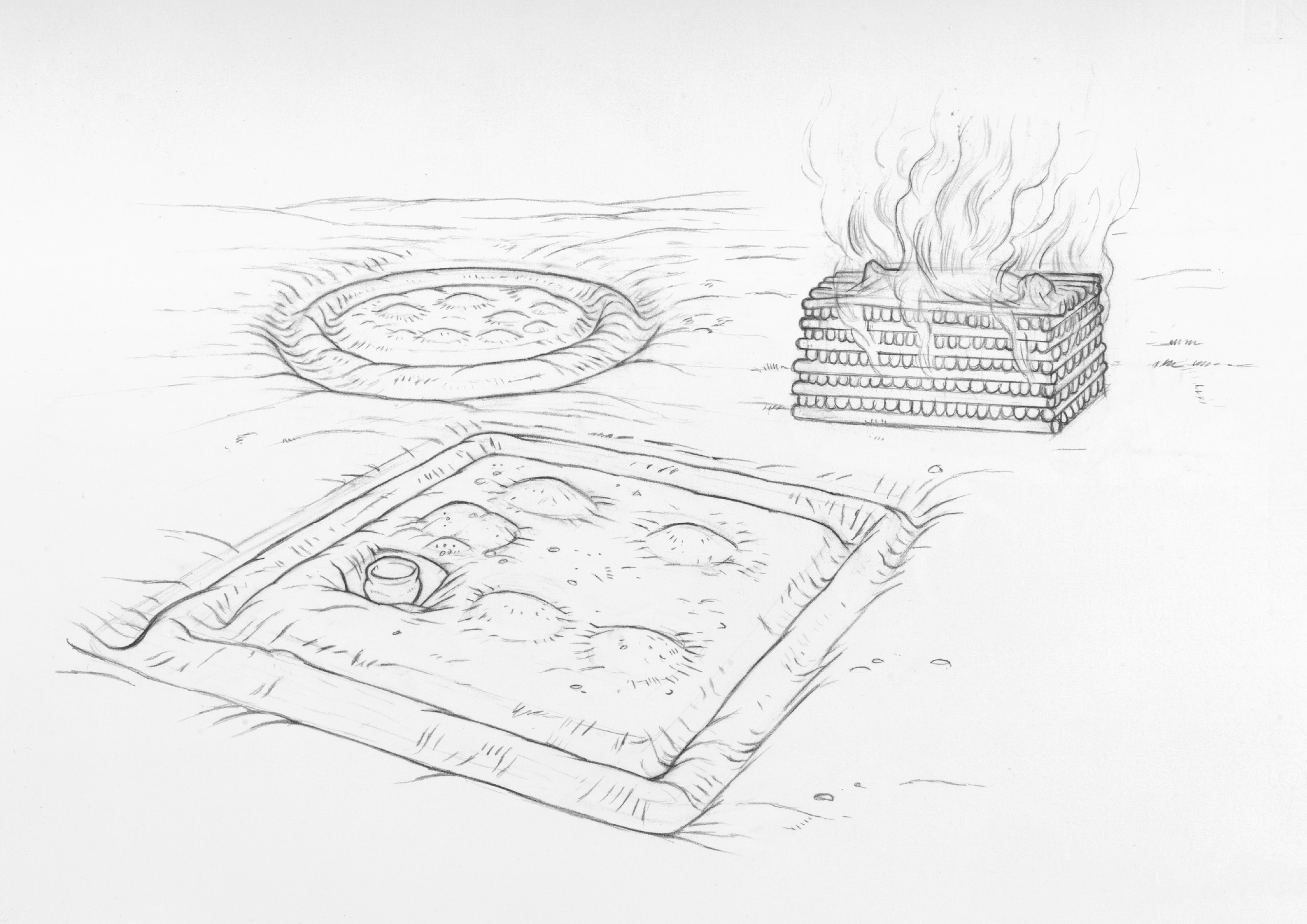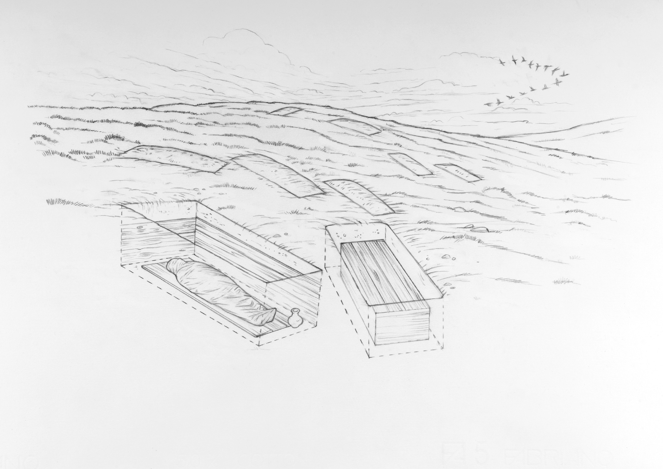 EN: Celtic burial rites and burial landscapes. Pencil on paper, 20 cm x 30 cm, 2021